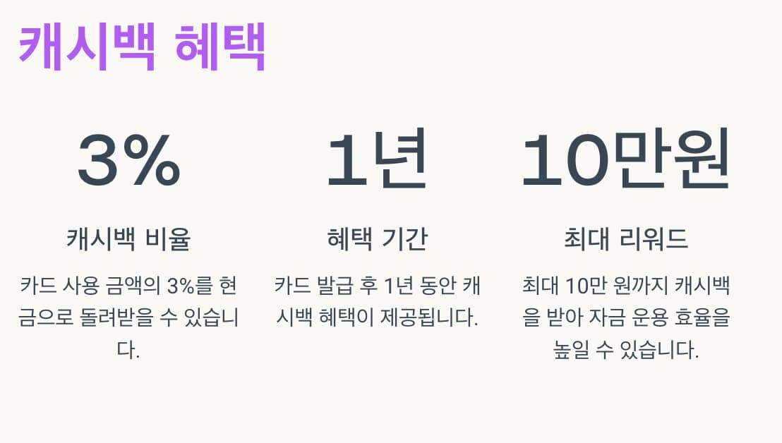 1년간 3% 캐시백, 최대 10만 원 돌려받는 혜택