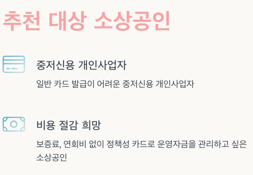 보증료, 연회비 없이 정책성 카드로 운영자금을 관리하고 싶은 소상공인