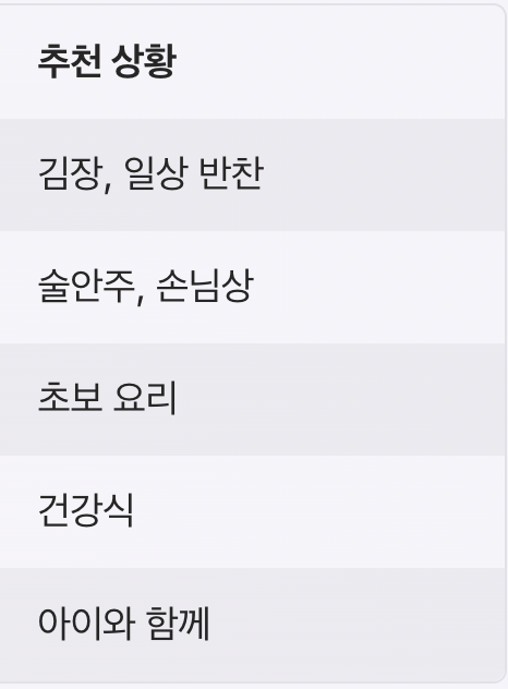 레시피 종류주요 재료특징추천 상황