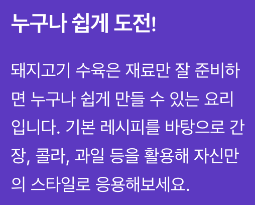 | 콜라 수육 | 콜라, 간장 | 단짠 조합, 부드러움 극대화 | 초보 요리 |
