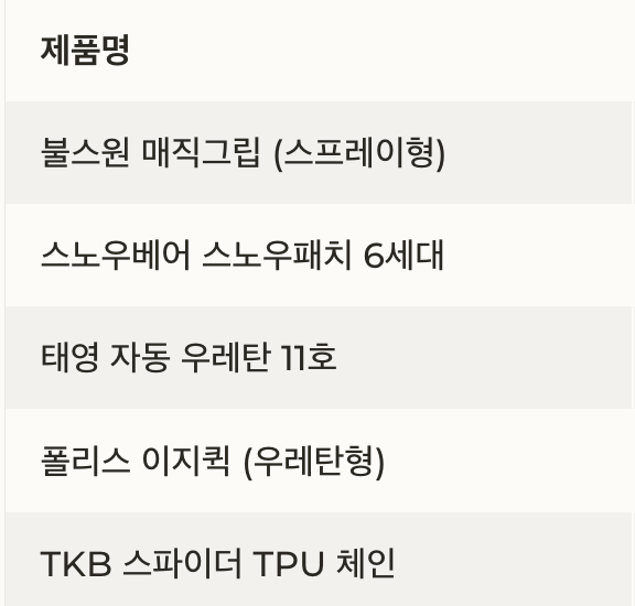 | 폴리스 이지퀵 (우레탄형) | 약 50,000원 | 강력한 스파이크, 신제품 |