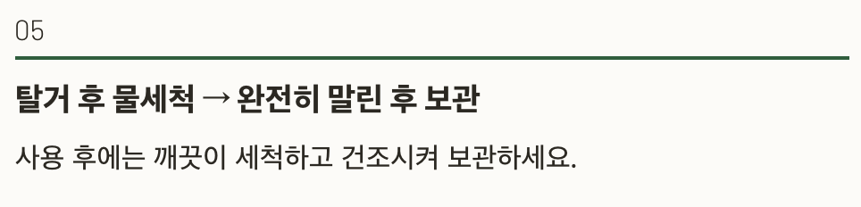 5단계: 탈거 후 물세척 → 완전히 말린 후 보관