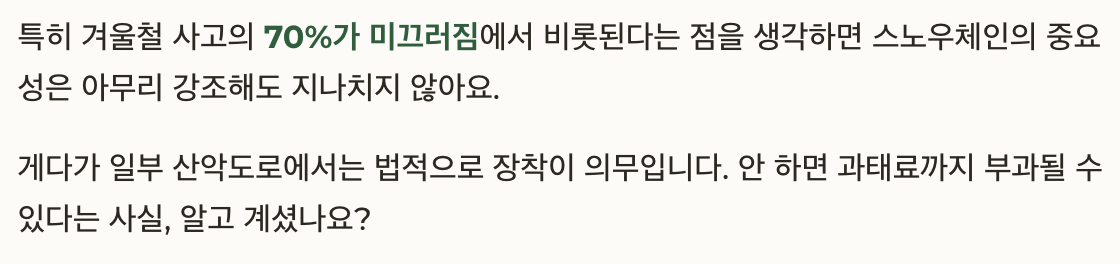 이럴 때 스노우체인은 단순한 자동차 액세서리가 아닌,