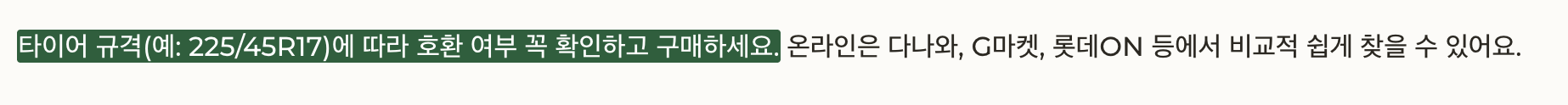 타이어 규격(예: 225/45R17)에 따라 호환 여부 꼭 확인하고 구매하세요.