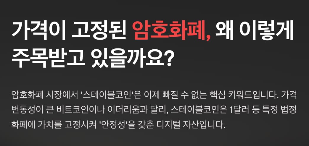 가치를 고정시켜 ‘안정성’을 갖춘 디지털 자산으로 주목받고 있습니다.