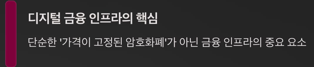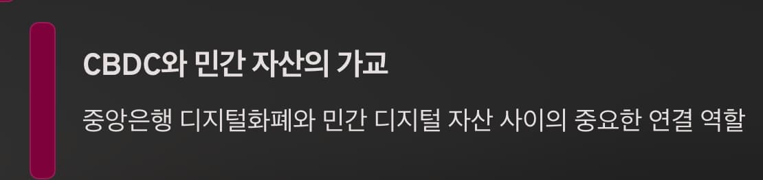 향후 CBDC와 민간 디지털 자산이 공존하는 구조 속에서 중요한 가교 역할을 할 것입니다.