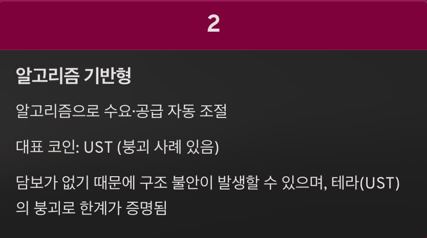 테라(UST)의 붕괴로 그 한계가 증명되기도 했습니다.