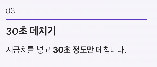 데치는 시간 30초 유지