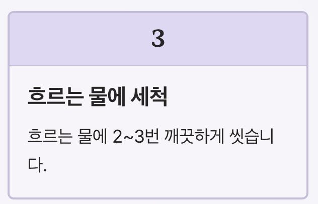 3️⃣ 흐르는 물에 2~3번 깨끗하게 씻습니다.