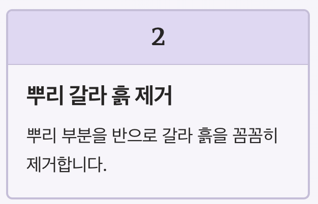 2️⃣ 시금치 뿌리 부분을 반으로 갈라 흙을 제거합니다.