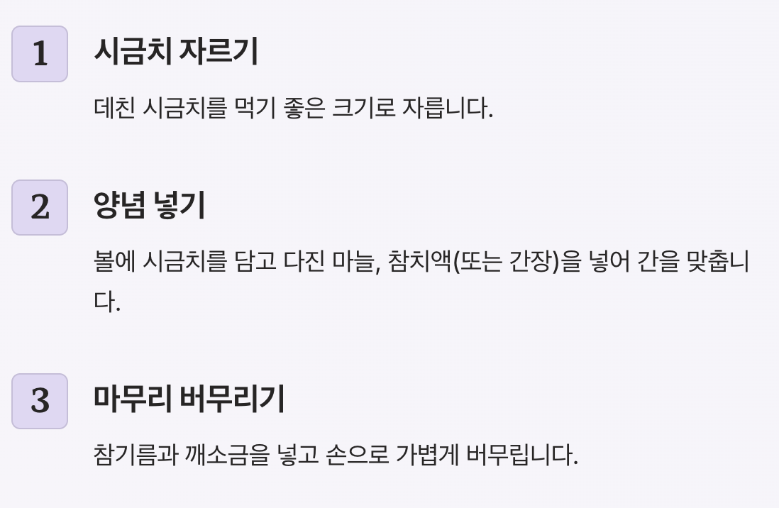 오늘은 시금치나물 맛있게 무치는 법을 자세히 소개해 드렸습니다. 시금치나물은 간단한 반찬이지만 데치는 시간과 양념 비율만 잘 맞추면 훨씬 맛있게 만들 수 있습니다.