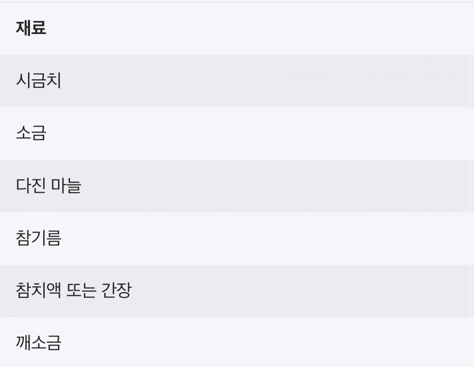 시금치나물 재료