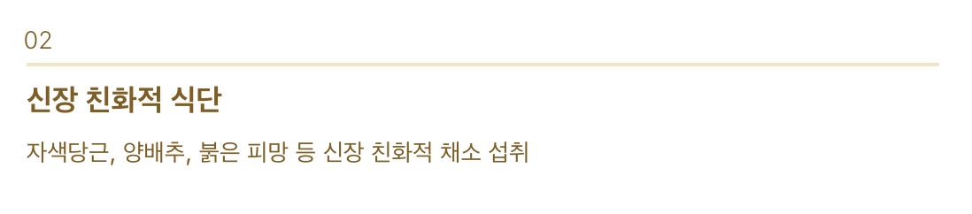 - 자색당근, 양배추, 붉은 피망 등 신장 친화적 채소 섭취