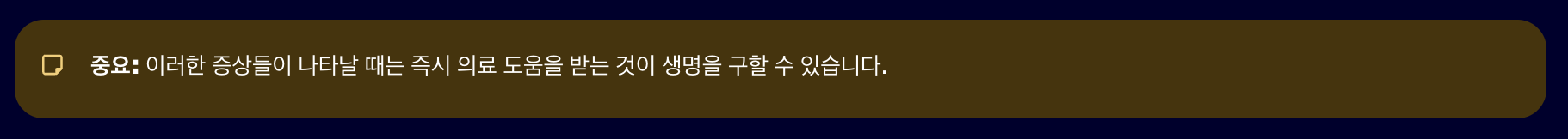 | 기타 변화 | 호흡 변화, 식은땀, 어지러움 |