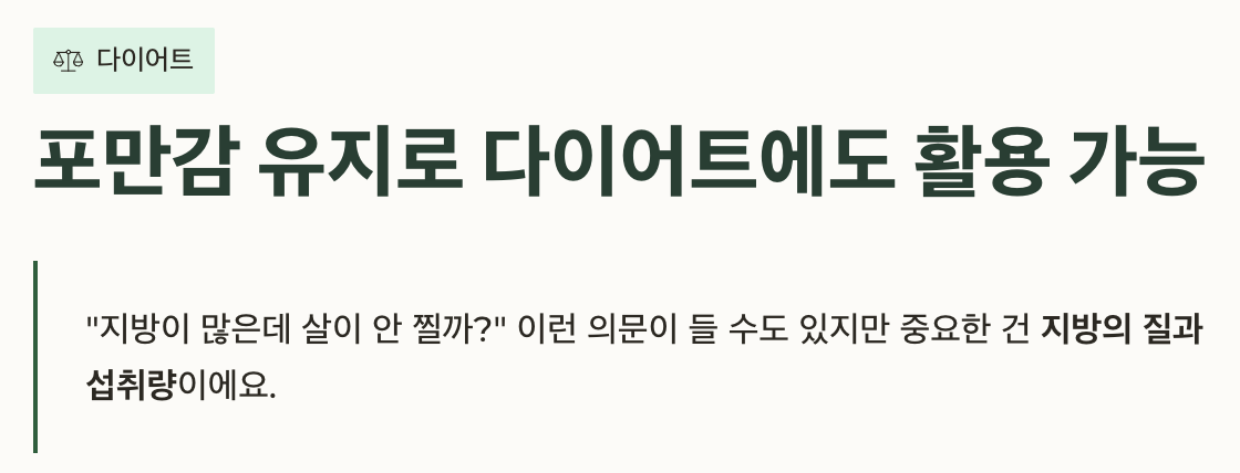 이런 의문이 들 수도 있지만 중요한 건 지방의 질과 섭취량이에요.