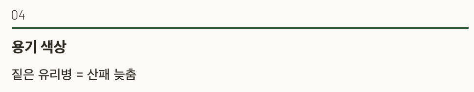 - 용기 색상: 짙은 유리병 = 산패 늦춤