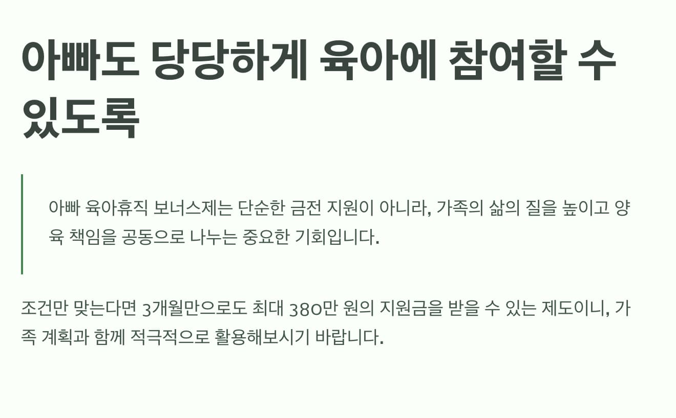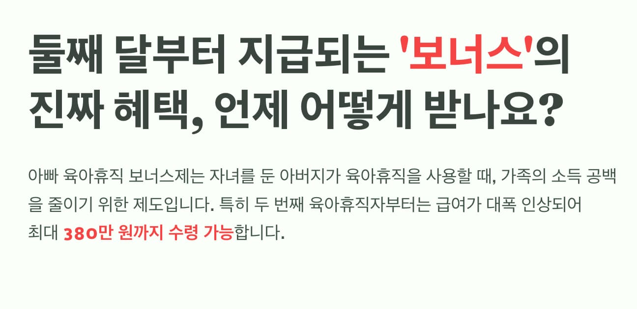 총급여가 316만 원 이상인 아빠라면 3개월간 약 380만 원 추가 혜택을 받을 수 있습니다.