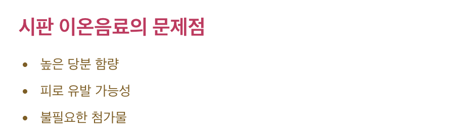 이때 시판 이온음료는 당분이 많아 오히려 피로를 유발할 수 있어요.