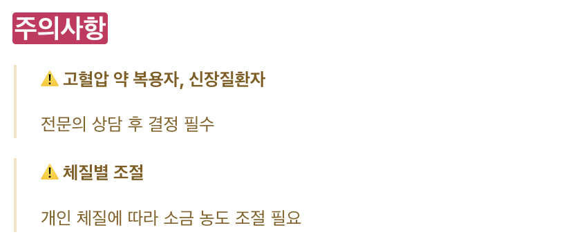 - 고혈압 약 복용자, 신장질환자: 전문의 상담 후 결정
