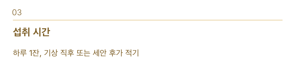 - 하루 1잔, 기상 직후 또는 세안 후가 적기