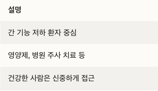 | 대상 | 간 기능 저하 환자 중심 |