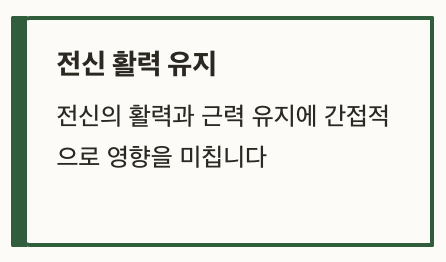 뿐만 아니라, 전신의 활력과 근력 유지, 뼈 건강에도 간접적으로 영향을 미치기 때문에 중장년층이라면 더욱 주의가 필요하겠죠.