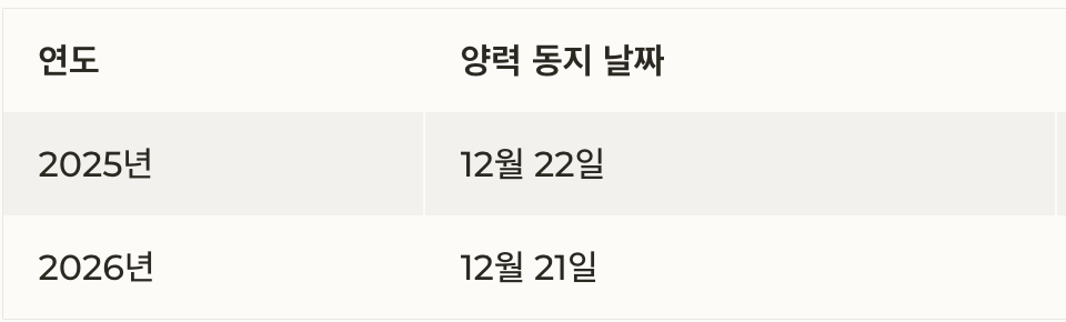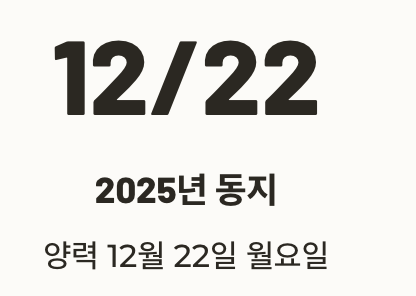 | 2025년 | 12월 22일 | 음력 11월 3일 | 애기동지 |