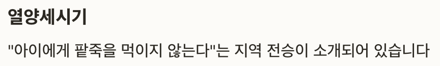 특히 “아이에게 팥죽을 먹이지 않는다”, “팥죽을 먹으면 삼신할머니가 노하신다”