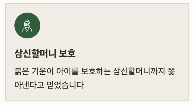 이 붉은 기운이 아이를 보호하는 삼신할머니까지 쫓아낸다고 믿었던 겁니다.