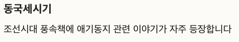 같은 지역 전승이 소개되어 있어, 애기동지가 단순한 민간전승이 아니었음을 보여줍니다.