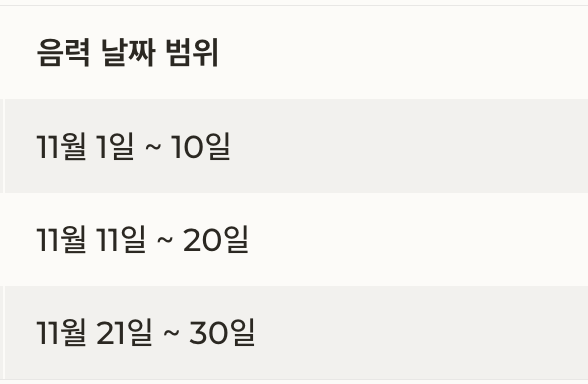 | 노동지 | 달이 늦게 든 동지 | 11월 21일 ~ 30일 |