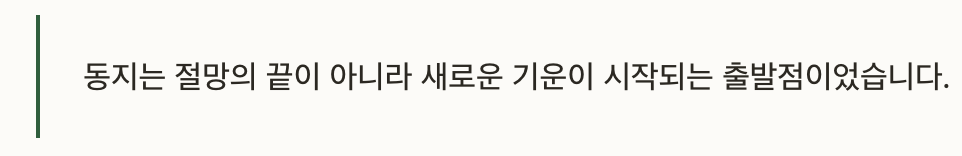 동지는 절망의 끝이 아니라 새로운 기운이 시작되는 출발점이었습니다.