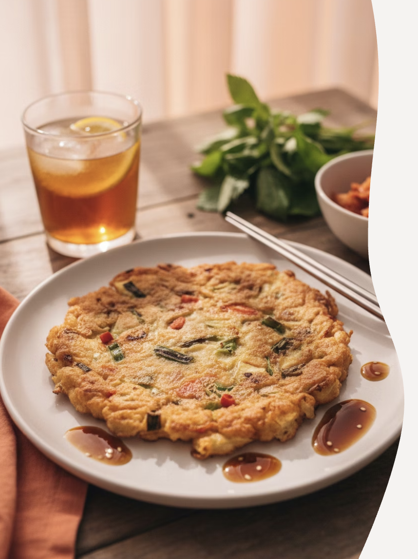 채 썬 양배추에 달걀과 부침가루를 섞어 팬에 구우면, 고소하고 바삭한 양배추 전이 완성됩니다.