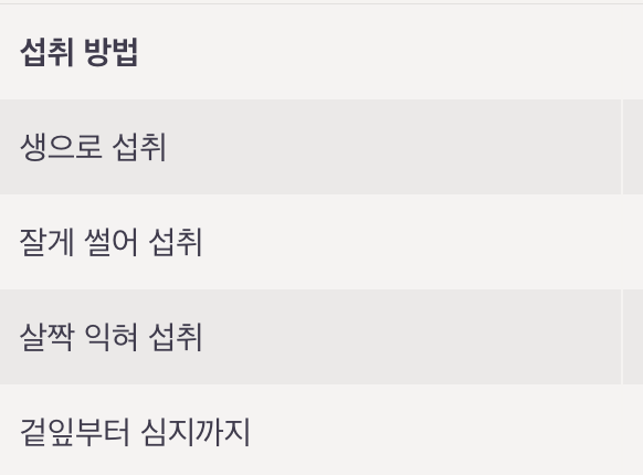 | 살짝 익혀 섭취 | 소화가 잘 안 되는 경우 적합 |