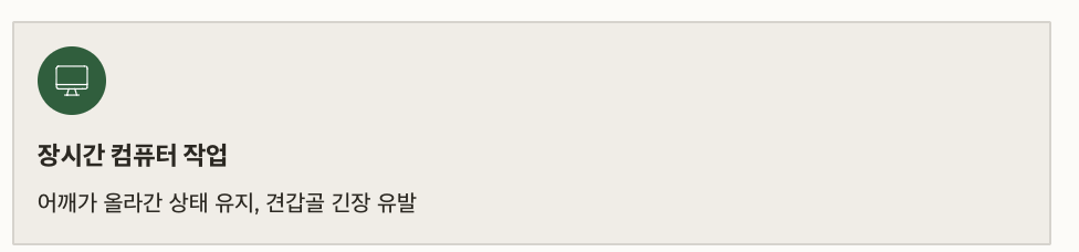 장시간 컴퓨터 작업 어깨가 올라간 상태 유지, 견갑골 긴장 유발