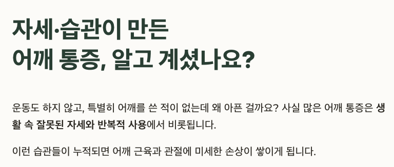 사실 많은 어깨 통증은 생활 속 잘못된 자세와 반복적 사용에서 비롯됩니다.