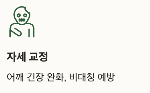| 자세 교정 | 어깨 긴장 완화, 비대칭 예방 |