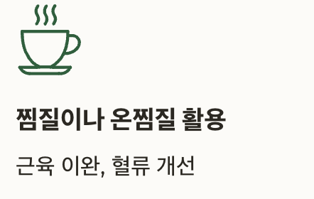 | 찜질이나 온찜질 활용 | 근육 이완, 혈류 개선 |