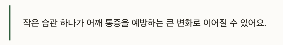 작은 습관 하나가 어깨 통증을 예방하는 큰 변화로 이어질 수 있어요.