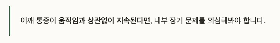 어깨 통증이 움직임과 상관없이 지속된다면, 내부 장기 문제를 의심해봐야 합니다.