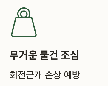 | 무거운 물건 조심 | 회전근개 손상 예방 |