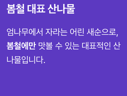 봄철에만 맛볼 수 있는 대표적인 산나물이에요.