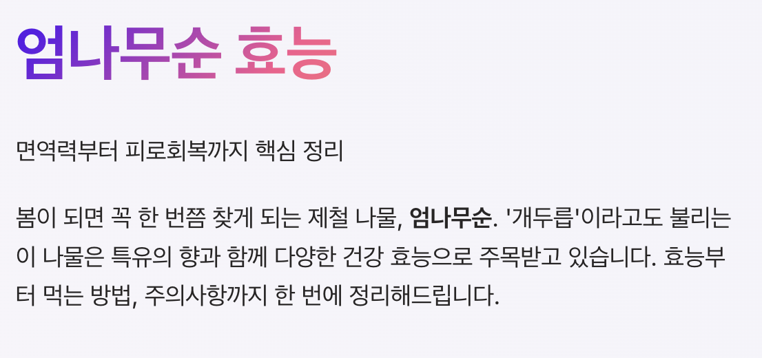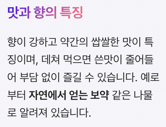 자연에서 얻는 보약 같은 나물로도 알려져 있어요.