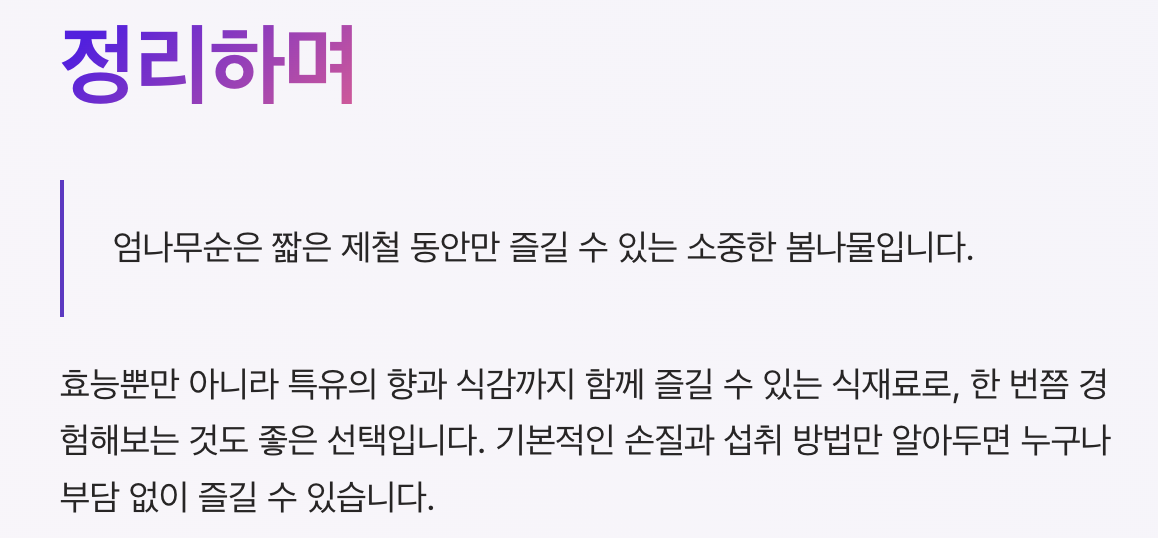 이 시기를 놓치면 맛보기 어려운 나물이에요.