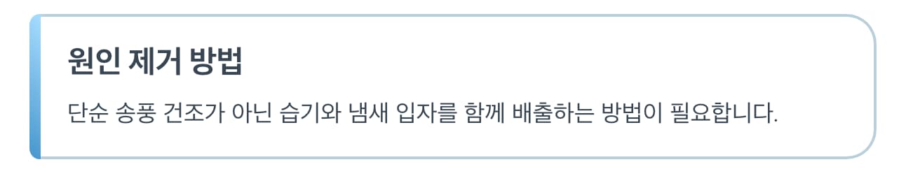 또한 송풍만 사용하는 것보다 환기와 함께 내부 습기 제거가 병행되어야 합니다.