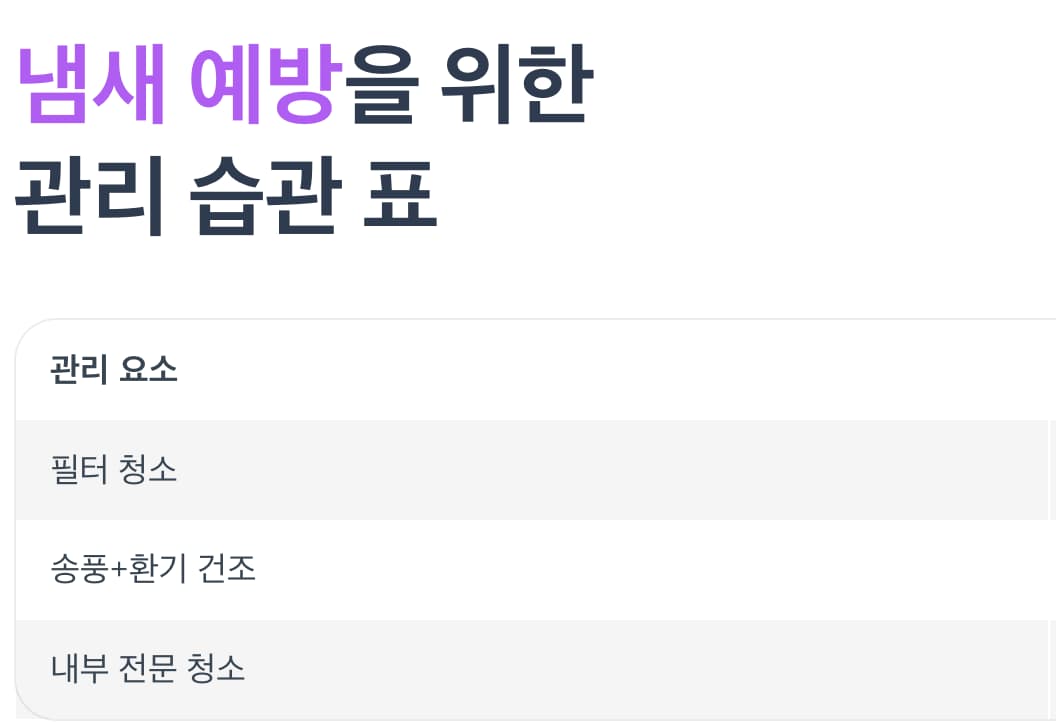 에어컨 냄새는 단순히 청소 한 번으로 끝나는 문제가 아니라