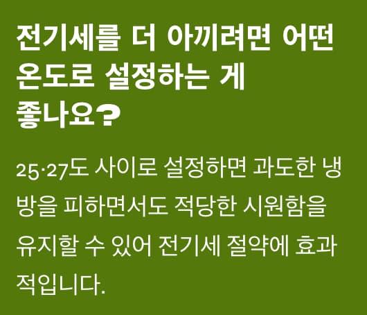 Q. 전기세를 더 아끼려면 어떤 온도로 설정하는 게 좋나요?