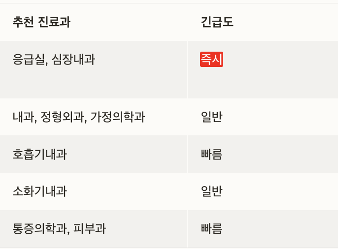 아래 표를 통해 응급 상황과 일반적인 통증을 구분해볼게요.