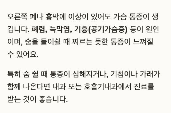 오른쪽 폐나 흉막에 이상이 있어도 가슴 통증이 생깁니다.