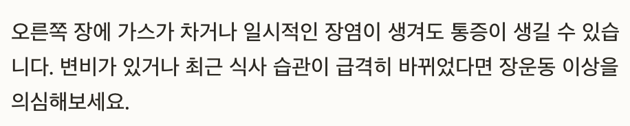 오른쪽 장에 가스가 차거나 일시적인 장염이 생겨도 통증이 생길 수 있습니다.